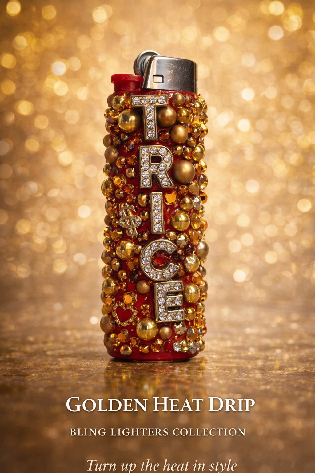 The Golden Heat Drip lighter is wrapped in fiery red tones and drenched in luxe gold pearls and crystals that glow with every flick. Finished with bold statement lettering and heart details, this piece is all about confidence, power, and unapologetic shine.