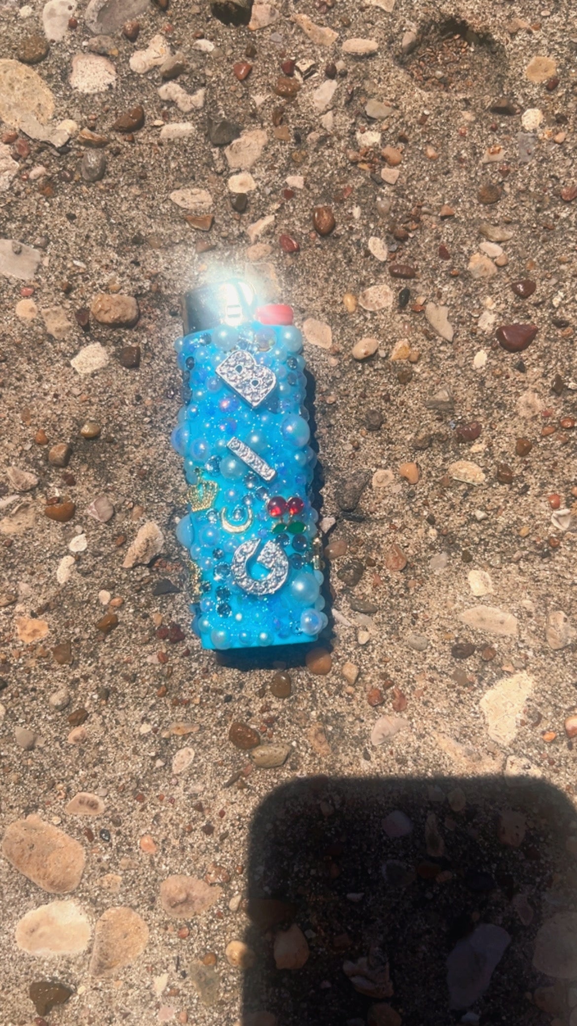 The Blue Ice Drip lighter is fully iced out in shimmering rhinestones, glossy pearls, and luxe charm details that sparkle from every angle. Wrapped in a bold ocean-blue finish, this piece isn’t just a lighter—it’s a statement.